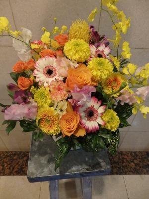 【お祝い花】プロにおまかせ アレンジメント「黄色・オレンジ系」3,850円