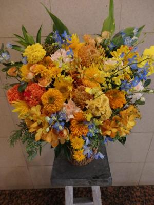 【お祝い花】プロにおまかせ アレンジメント「黄色・オレンジ系」3,850円