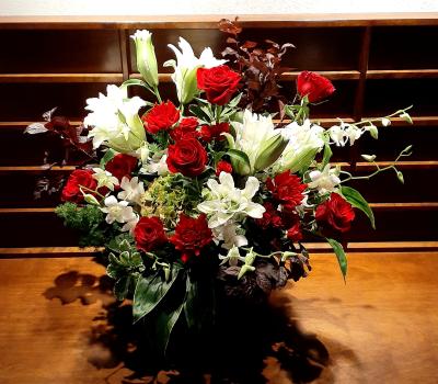 【お祝い花】プロにおまかせ アレンジメント「赤系」3,850円