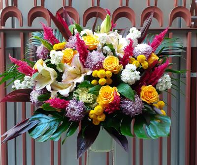 【お祝い花】プロにおまかせ アレンジメント「黄色・オレンジ系」3,850円