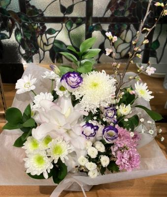 トルコギキョウ入れたピンク・パープル系おまかせアレンジ