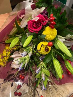 ボリューム満点!ユリとバラのゴージャスな花束