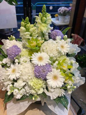 通夜,四十九日,御供え,法事,法要,一周忌,三回忌,お悔やみ枕花,弔花,弔事用アレンジメント
