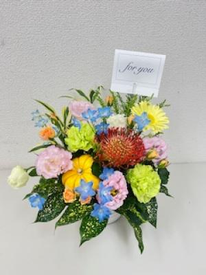 【お祝い花】プロにおまかせ豪華アレンジ「黄色・オレンジ系」11,000円