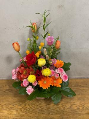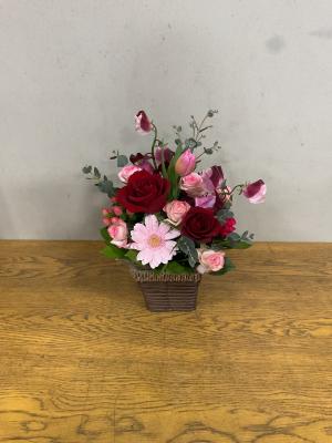 【お祝い花】プロにおまかせ 豪華アレンジメント「ピンク・赤系」