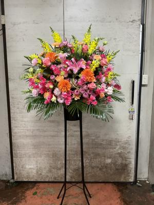 【お祝い花】 プロにおまかせ 豪華アレンジメント「ピンク・赤系」
