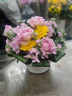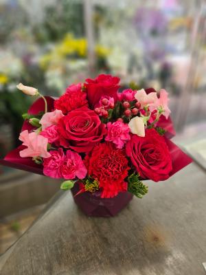 ピンクバラを入れたピンク系おまかせアレンジ