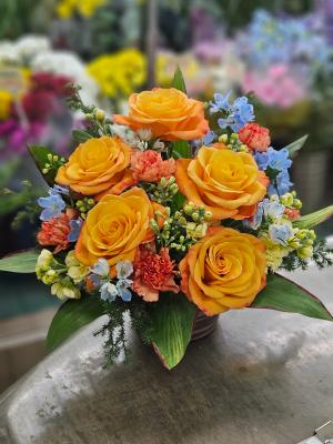 オレンジバラ入れたオレンジ・イエロー系おまかせアレンジ