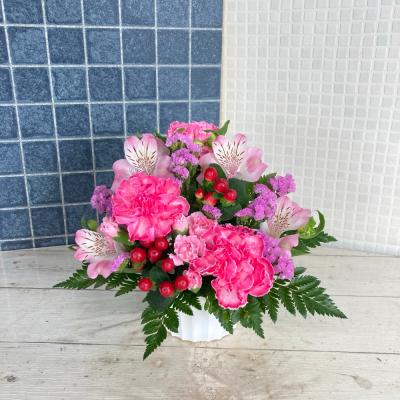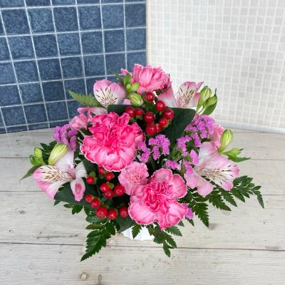 トルコギキョウとカーネーションの迎春アレンジメント