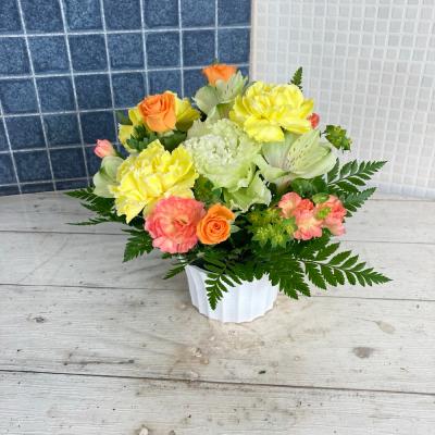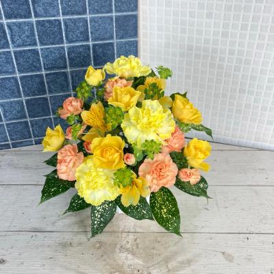 【お祝い花】プロにおまかせ アレンジメント「黄色・オレンジ系」3,850円