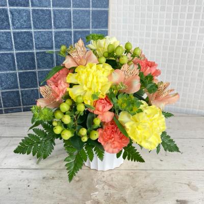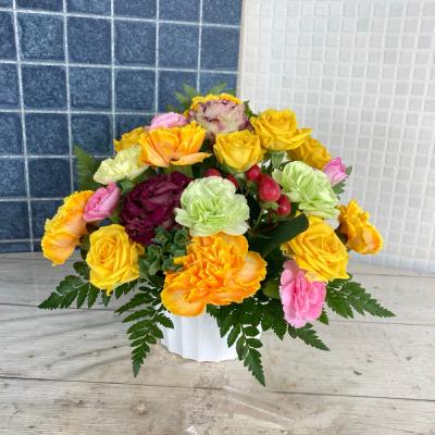 【お祝い花】プロにおまかせ 豪華アレンジメント「黄色・オレンジ系」