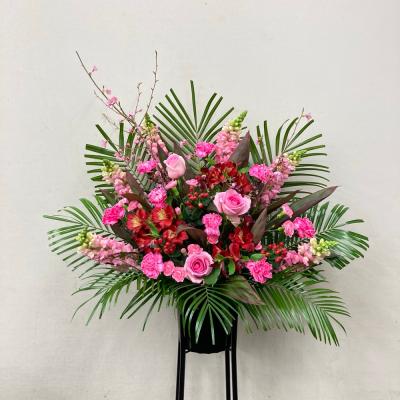 【お祝い花】 プロにおまかせ 豪華アレンジメント「ピンク・赤系」