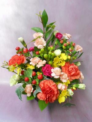 【お祝い花】プロにおまかせ アレンジメント「黄色・オレンジ系」3,850円
