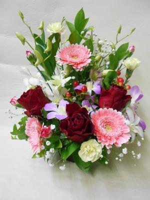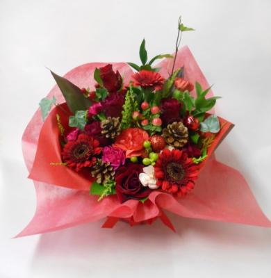 【お祝い花】プロにおまかせ ブーケ「赤系」3,850円