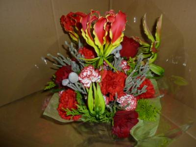 【お祝い花】プロにおまかせ ブーケ「赤系」3,850円