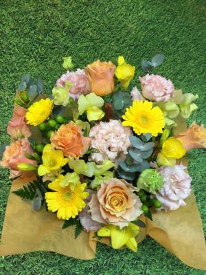 【お祝い花】プロにおまかせ アレンジメント「黄色・オレンジ系」3,850円