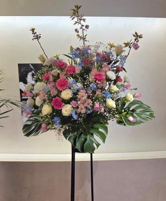 【お祝い花】プロにおまかせ 豪華アレンジメント「ピンク・赤系」