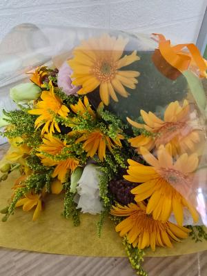 【お祝い花】プロにおまかせ アレンジメント「黄色・オレンジ系」3,850円