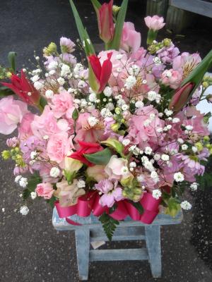 トルコギキョウ入れたピンク・パープル系おまかせアレンジ