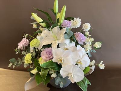【お悔やみ・お供え】プロにおまかせ アレンジメント「白上がり」3,850円