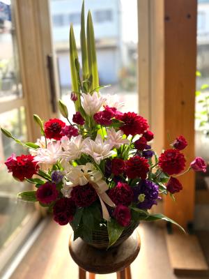 【お祝い花】プロにおまかせ アレンジメント「赤系」3,850円