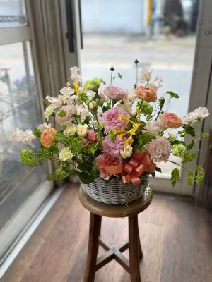 【お祝い花】プロにおまかせ 豪華アレンジメント「ピンク・赤系」