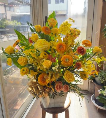 【お祝い花】プロにおまかせ豪華アレンジ「黄色・オレンジ系」11,000円